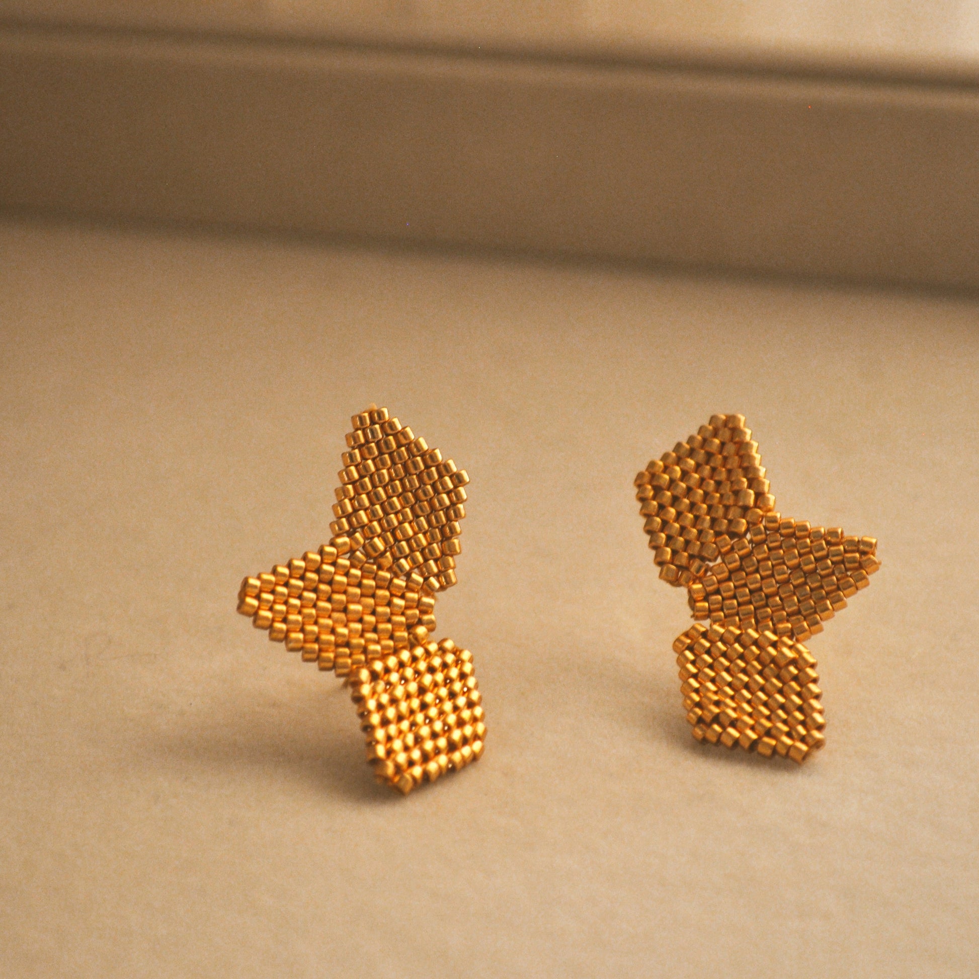 Aretes tejidos a mano con miyuki en bases de aretes de acero inoxidable.