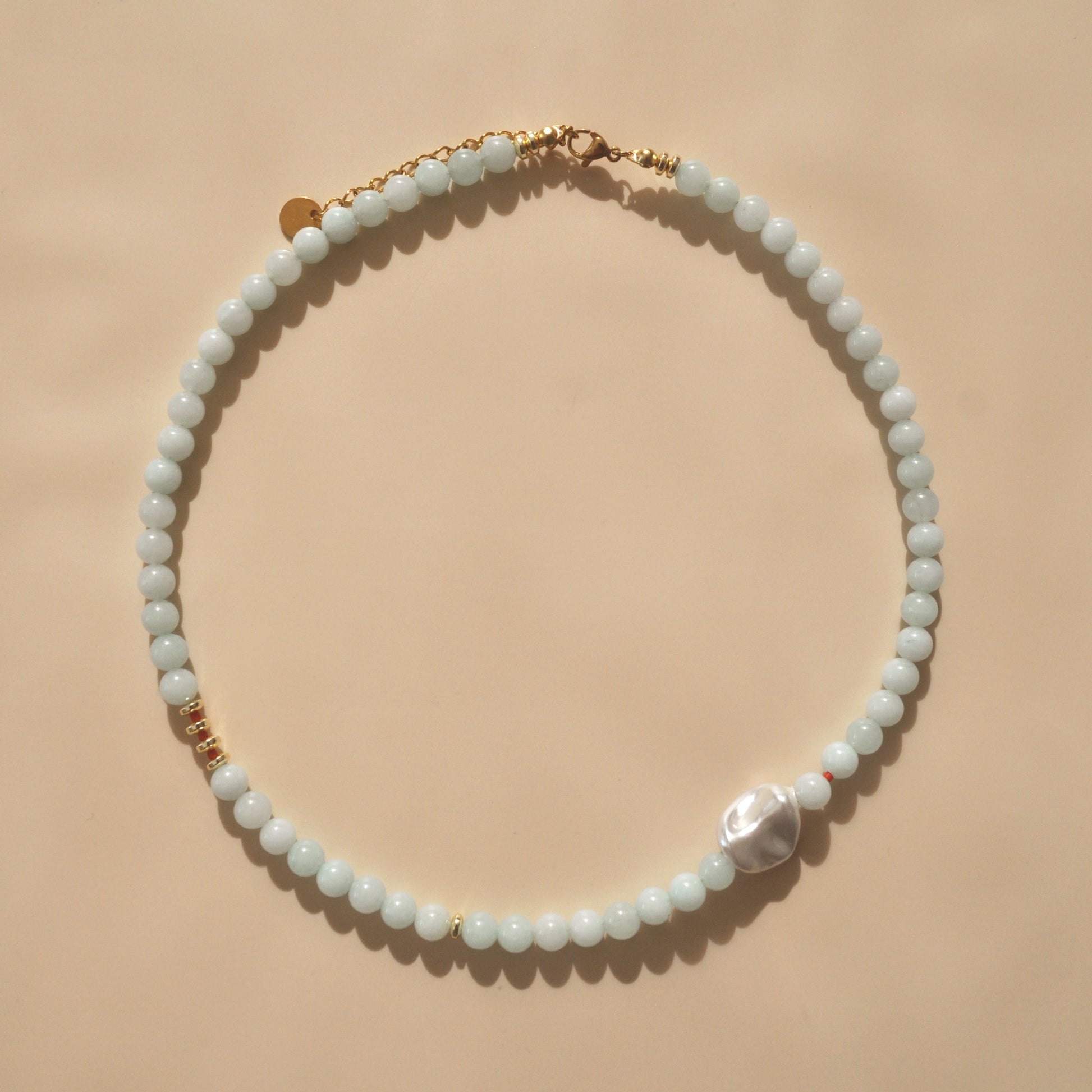 Fue creado a partir de una combinación de diferentes tipo de piedras naturales como citrino, agata café y perlas. Juntos crean una pieza de elegancia intuitiva, alegría espontánea y fuerza interior.