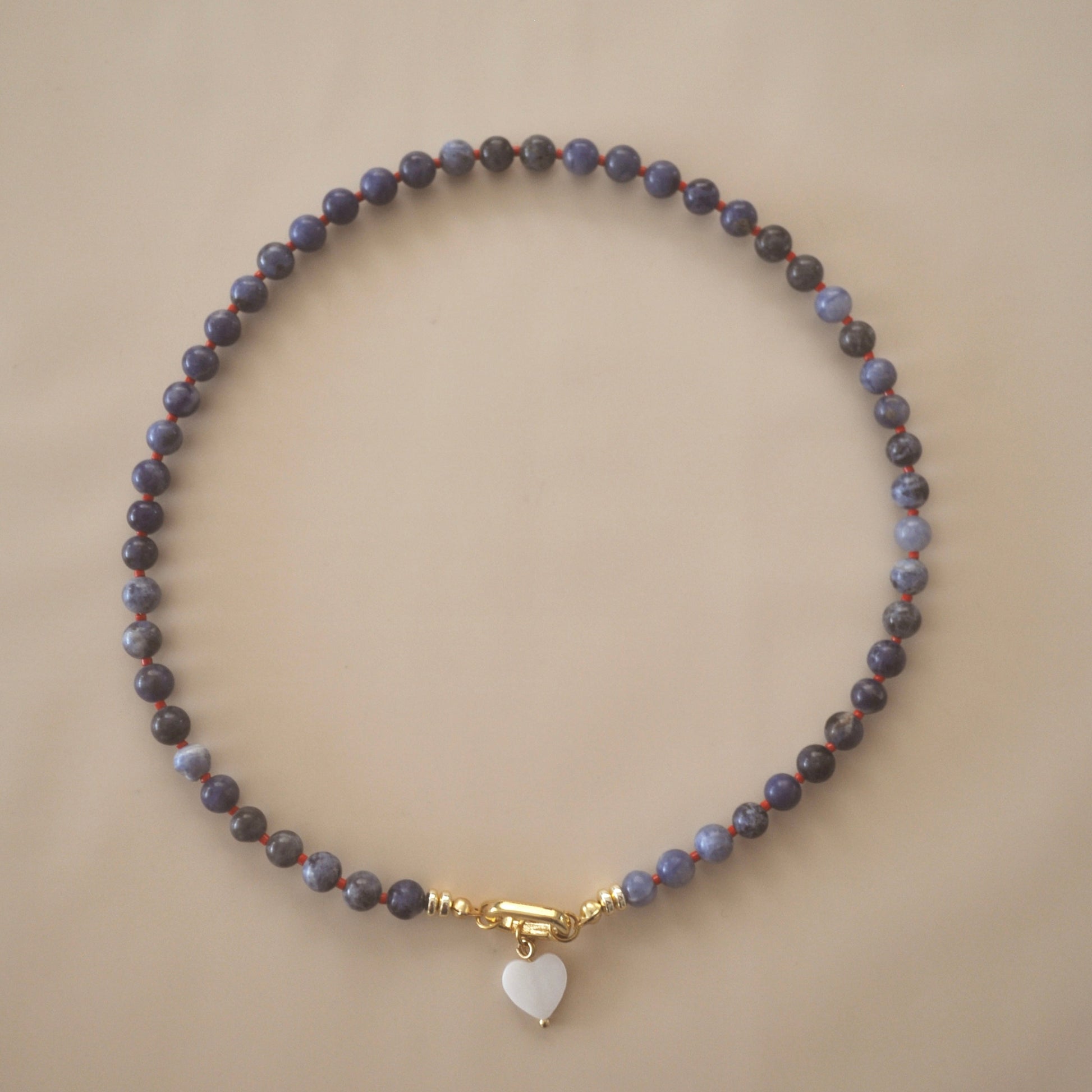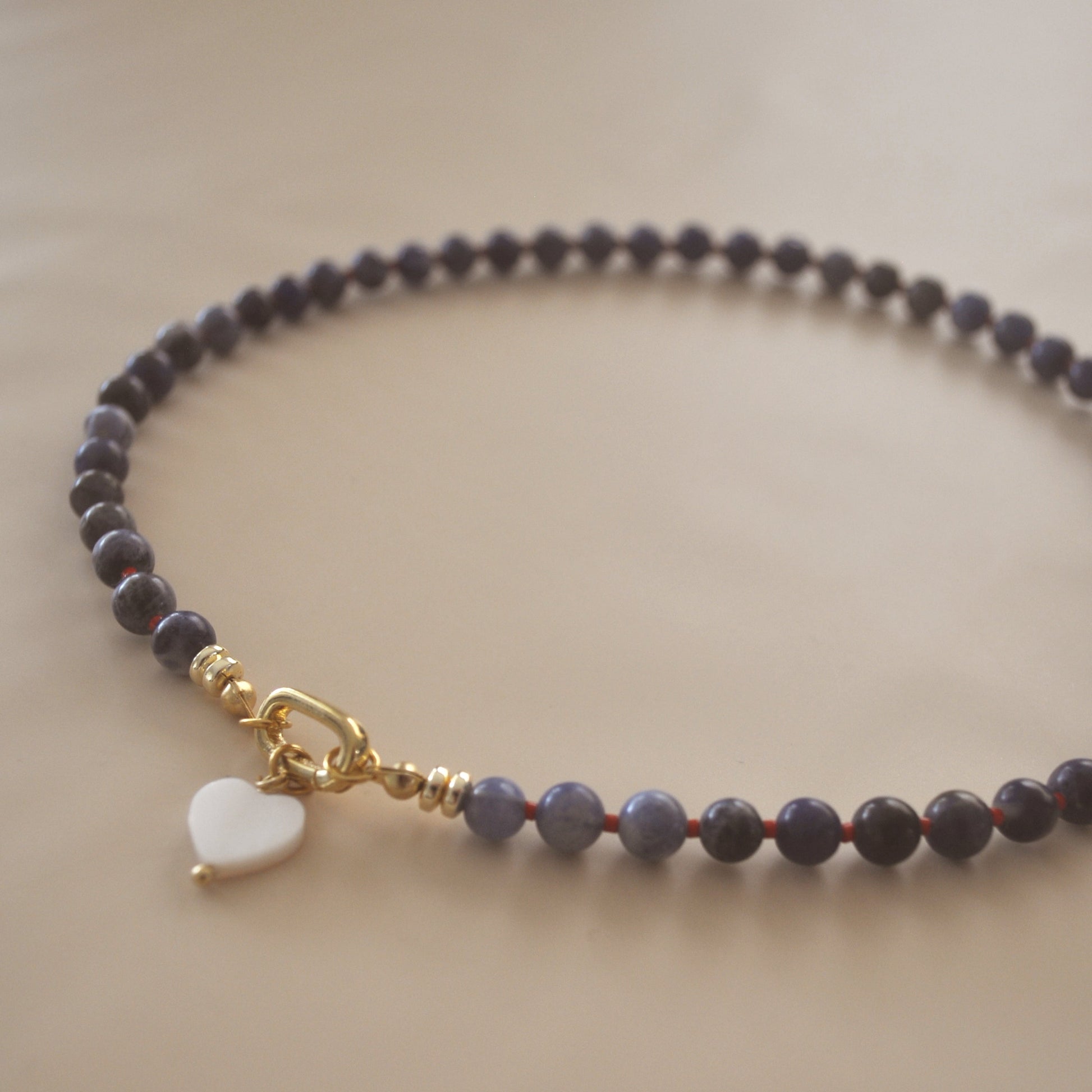 Fue creado a partir de una combinación de piedras naturales, miyukis y cierre de acero inoxidable.