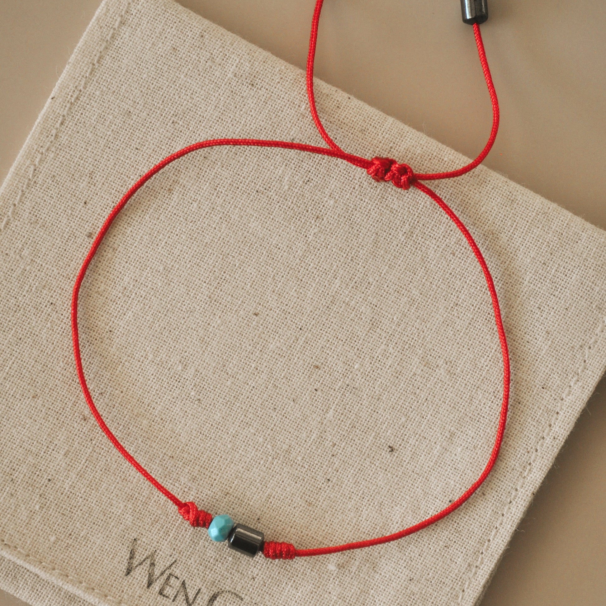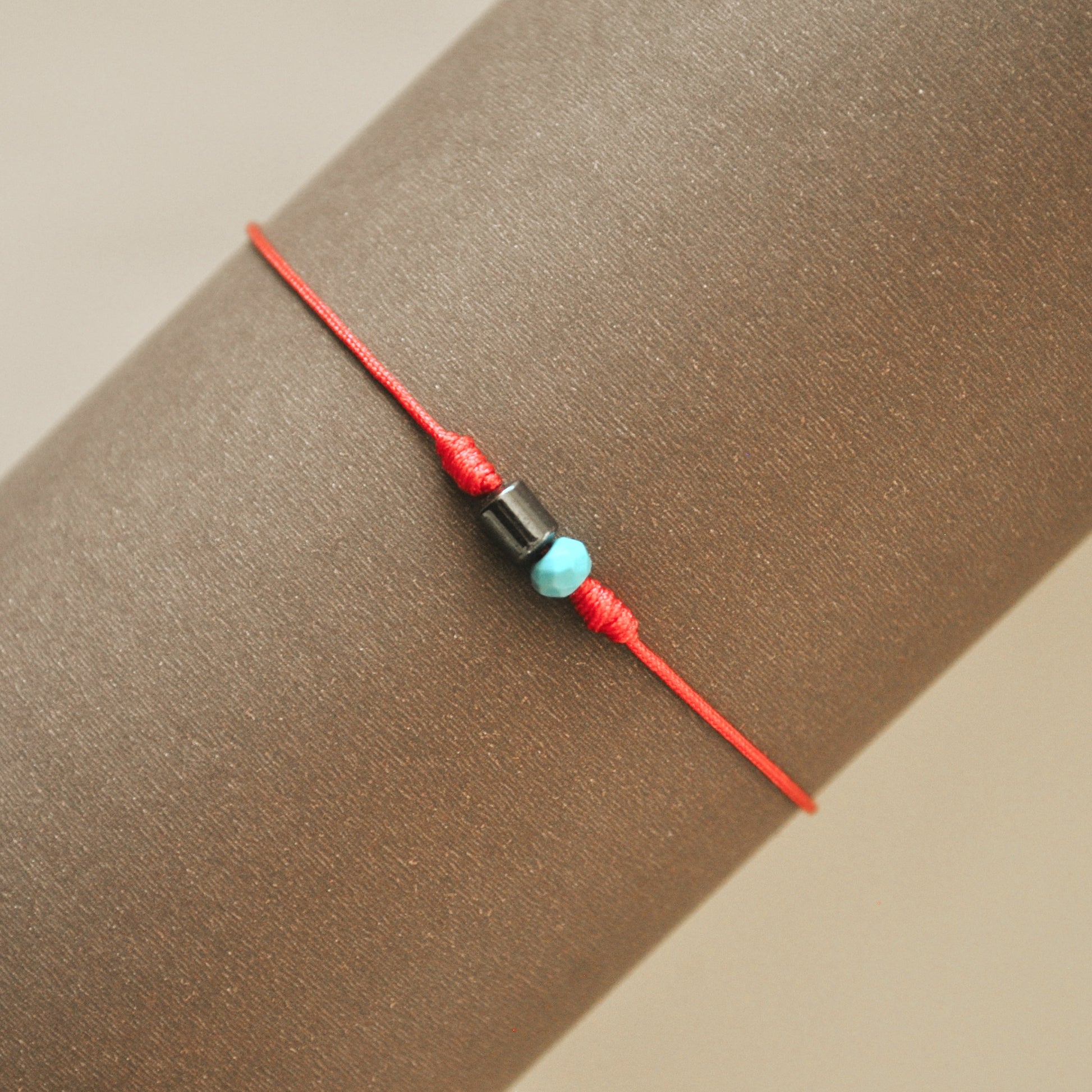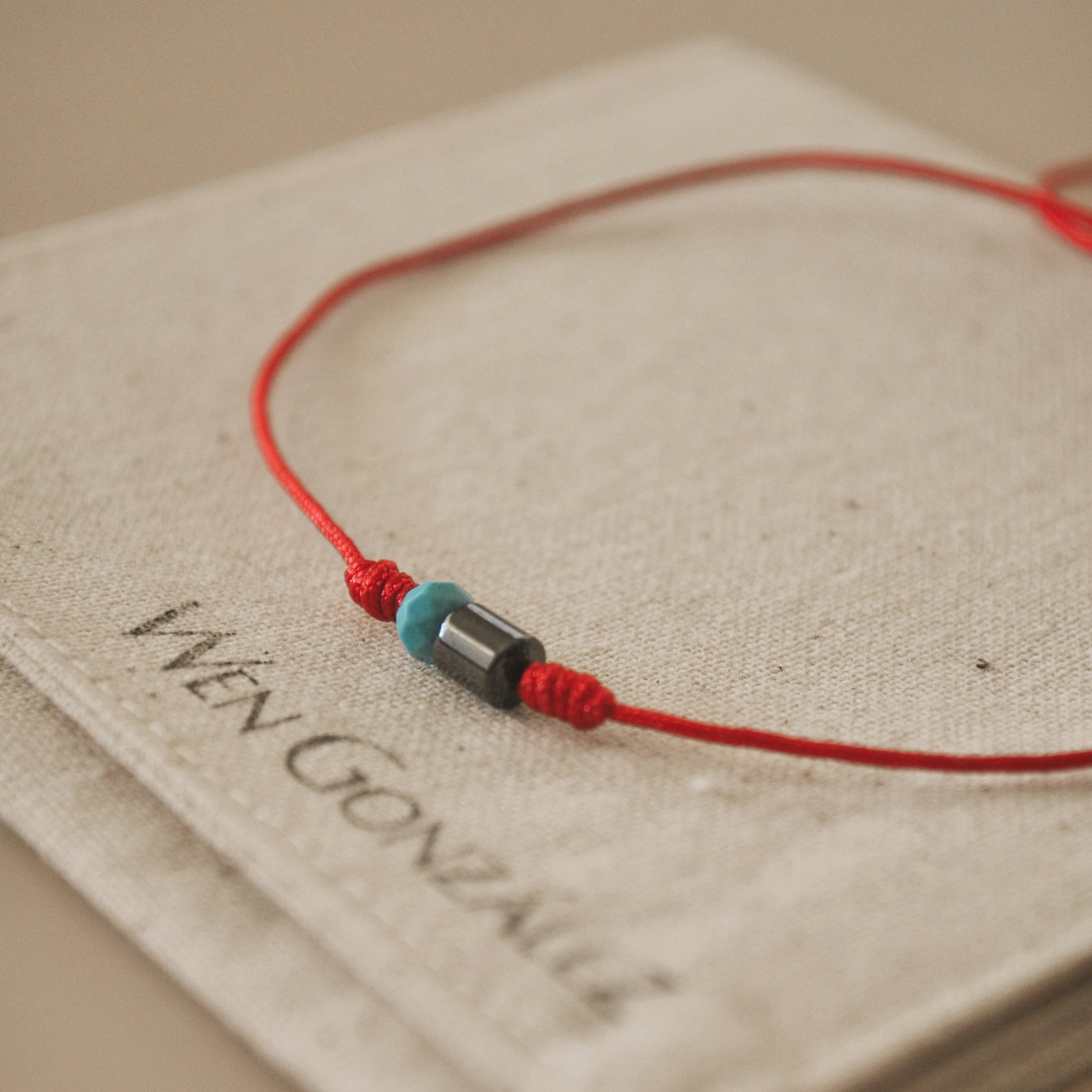 Brazalete ajustable de hilo, piedra Turquesa y Acerina de 5mm.