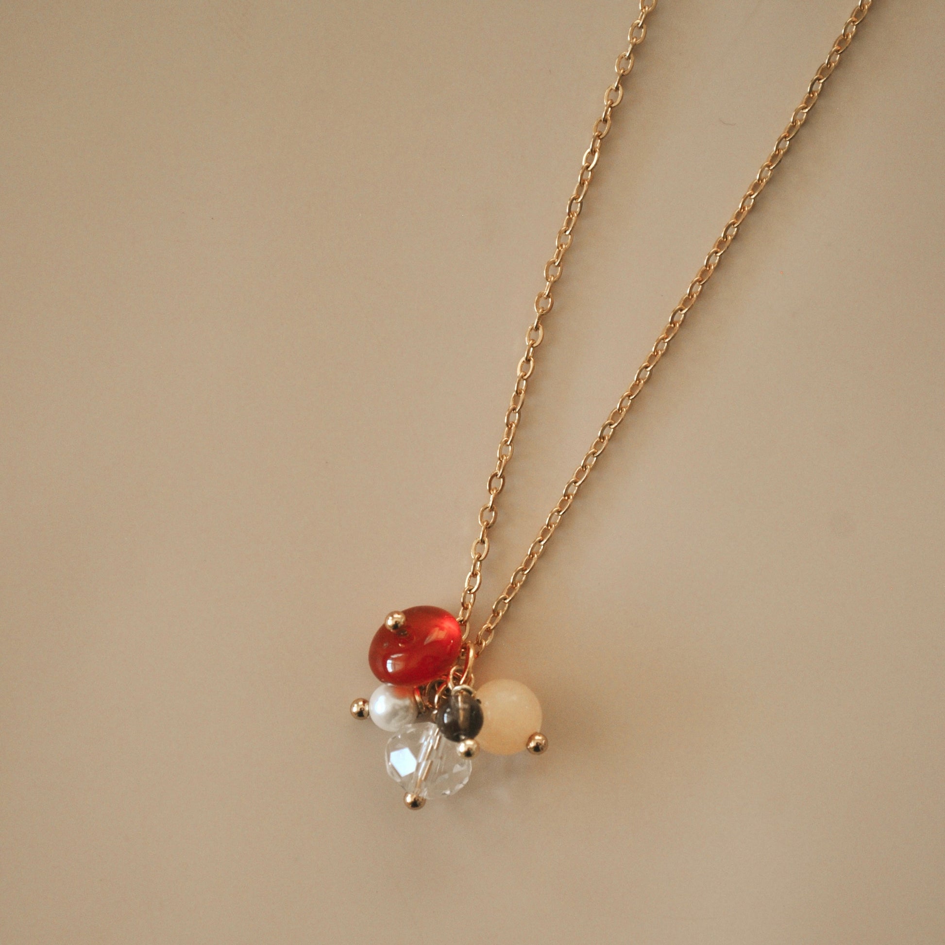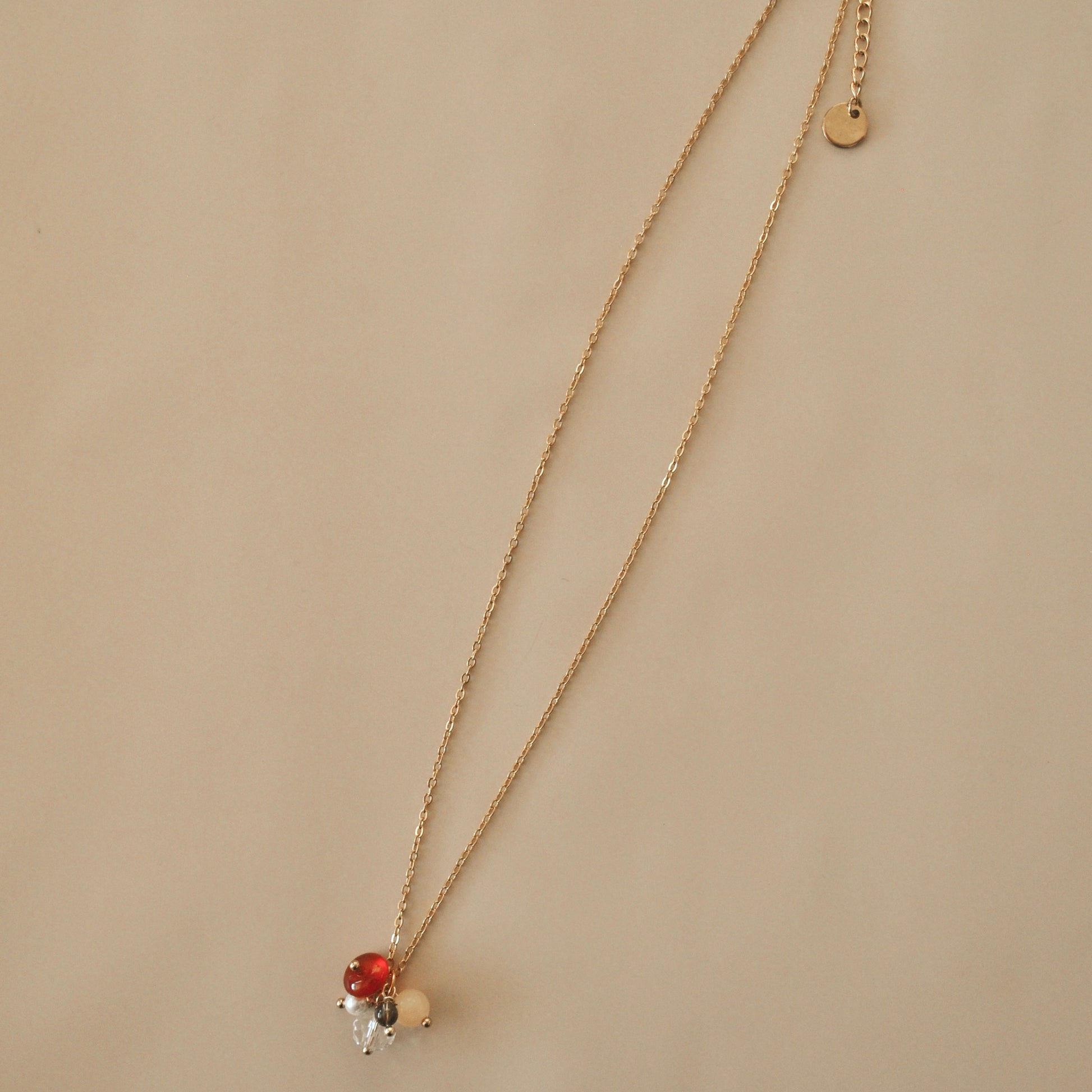 Fue creado a partir de una combinación de diferentes tipo de piedras naturales y cadena de acero inoxidable, longitud de 43cm más 3cm de extensión.