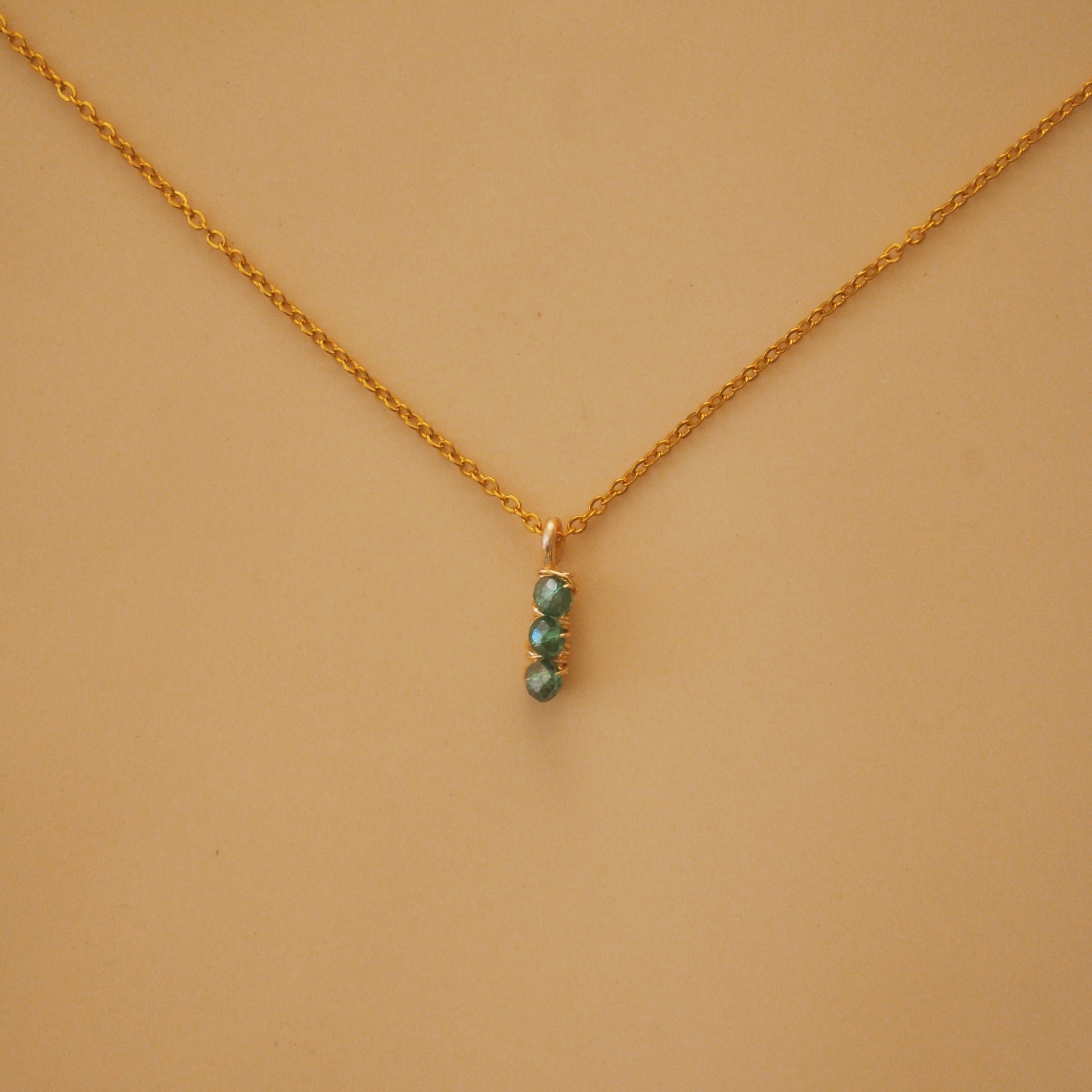 Línea: hecho a mano con cristales color esmeralda y técnica alambrismo con baño de oro de 18K, son piezas hipoalergénicas que no destiñen. Liviano, tamaño de 1cm.