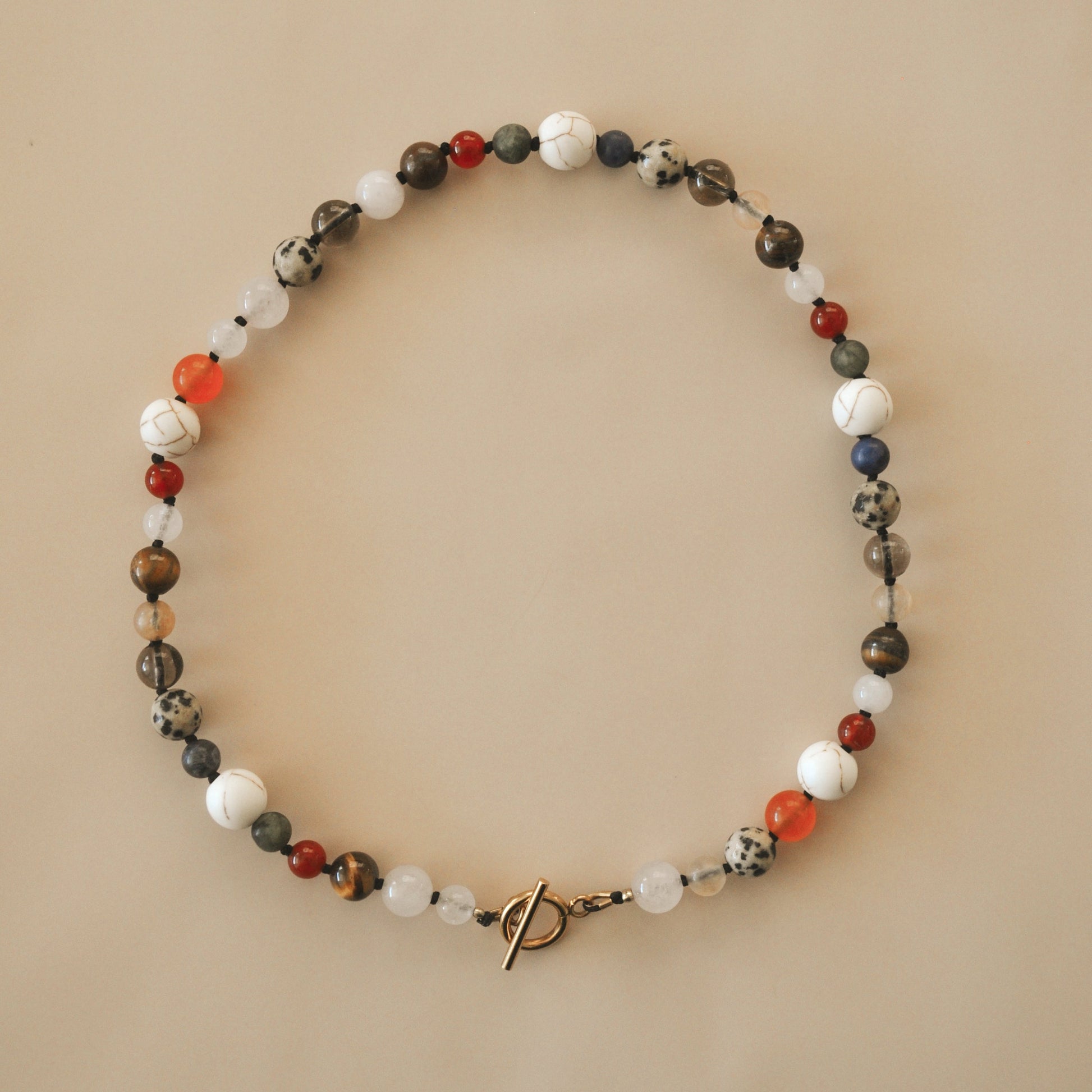 Fue creado a partir de una combinación de diferentes tipo de piedras naturales, longitud de 43cm.