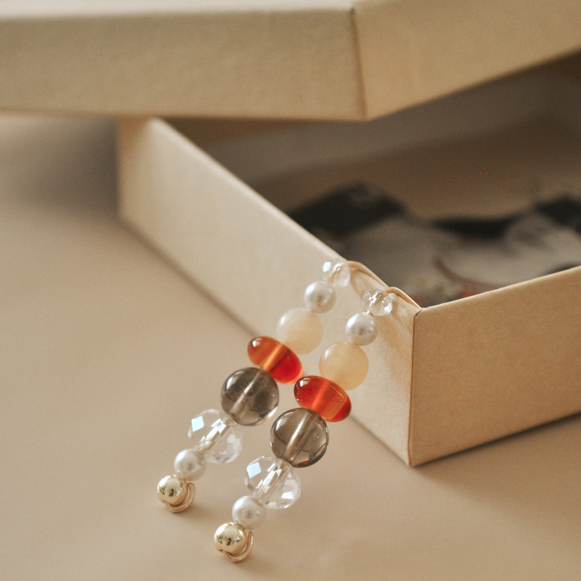 Fue creado a partir de una combinación de diferentes tipo de piedras naturales y base de cobre con recubrimiento AAA baño de oro de 14k, hipoalergénicos.