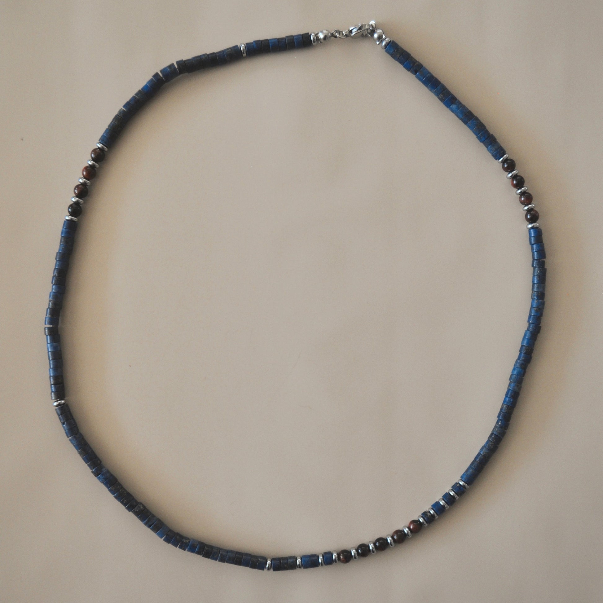 Fue creado a partir de una combinación de diferentes tipo de piedras naturales de 4mm y acero inoxidable. Juntos crean una pieza de elegancia en tonos oscuros.