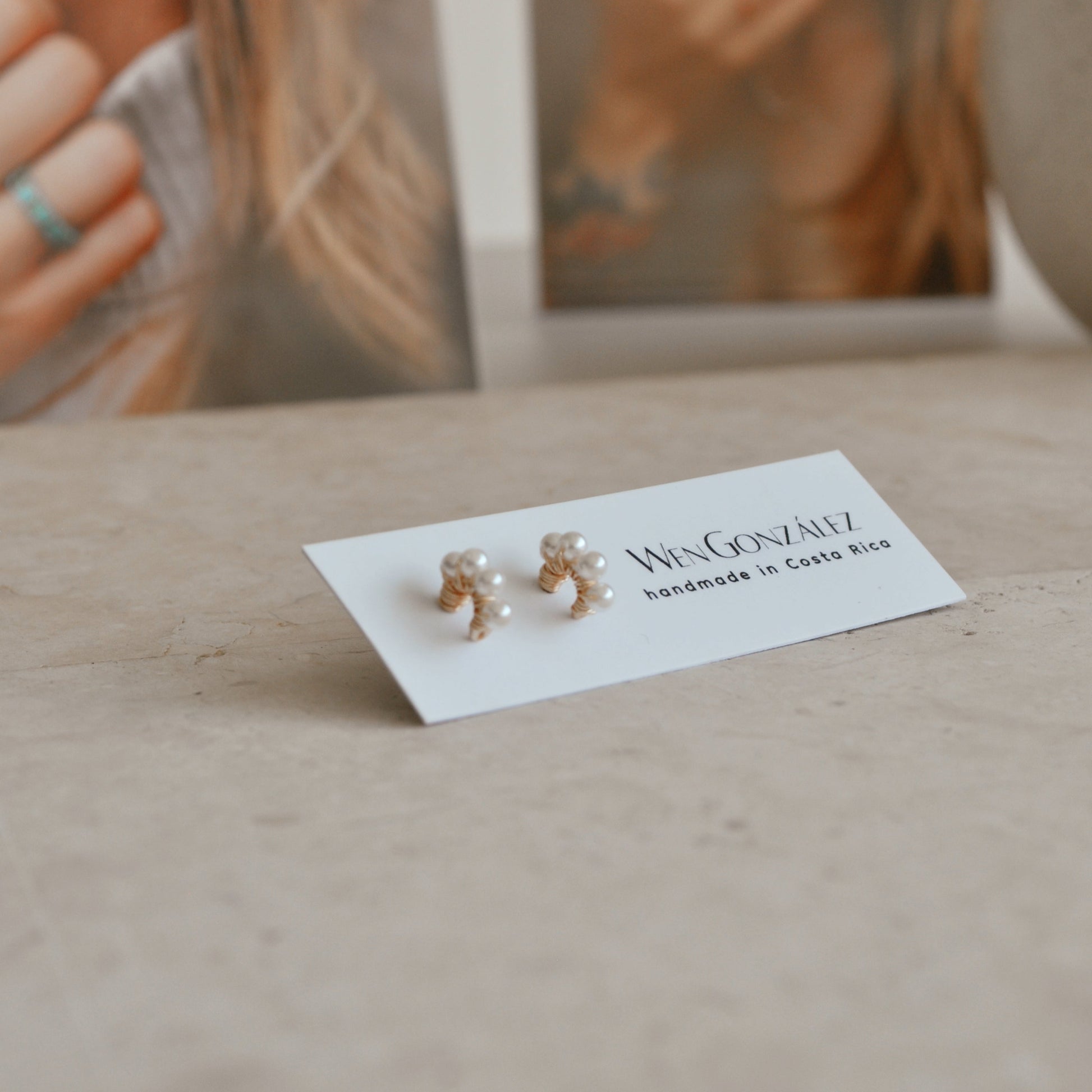 Las piezas son de perlas y alambre de cobre, calidad AAA, con recubrimiento en polímero, dorado o plateado. Esto hace que la pieza mantenga su brillo, sea duradera y a la vez hipoalergénico.