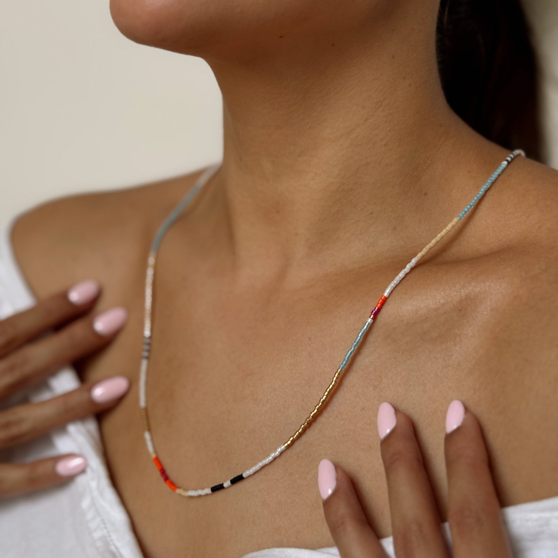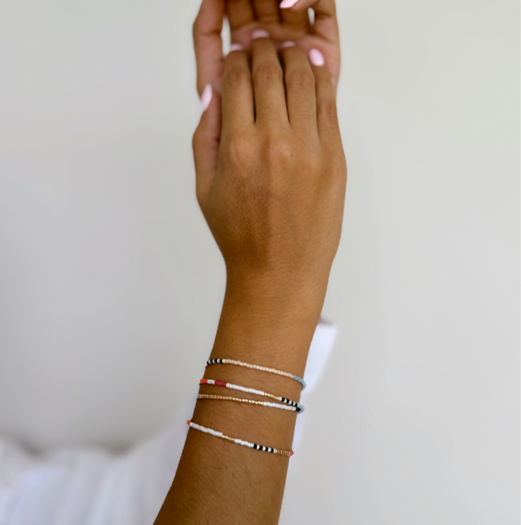 Pulsera ajustable de hilo hecha con miyuki de colores. Da 4 vueltas a la muñeca. Se puede utilizar igualmente como collar largo.