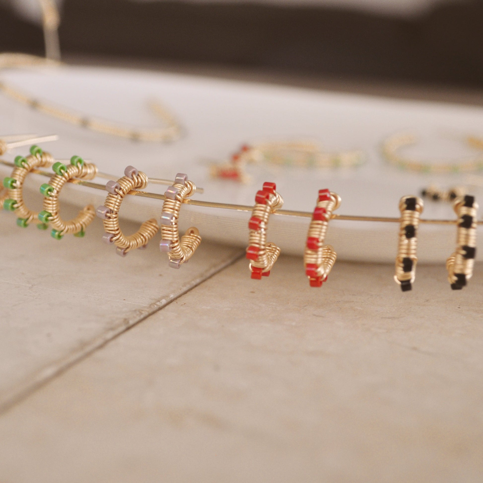 Las piezas son de alambre de cobre, calidad AAA, con recubrimiento en polímero, dorado o plateado. Esto hace que la pieza mantenga su brillo, sea duradera y a la vez hipoalergénico.