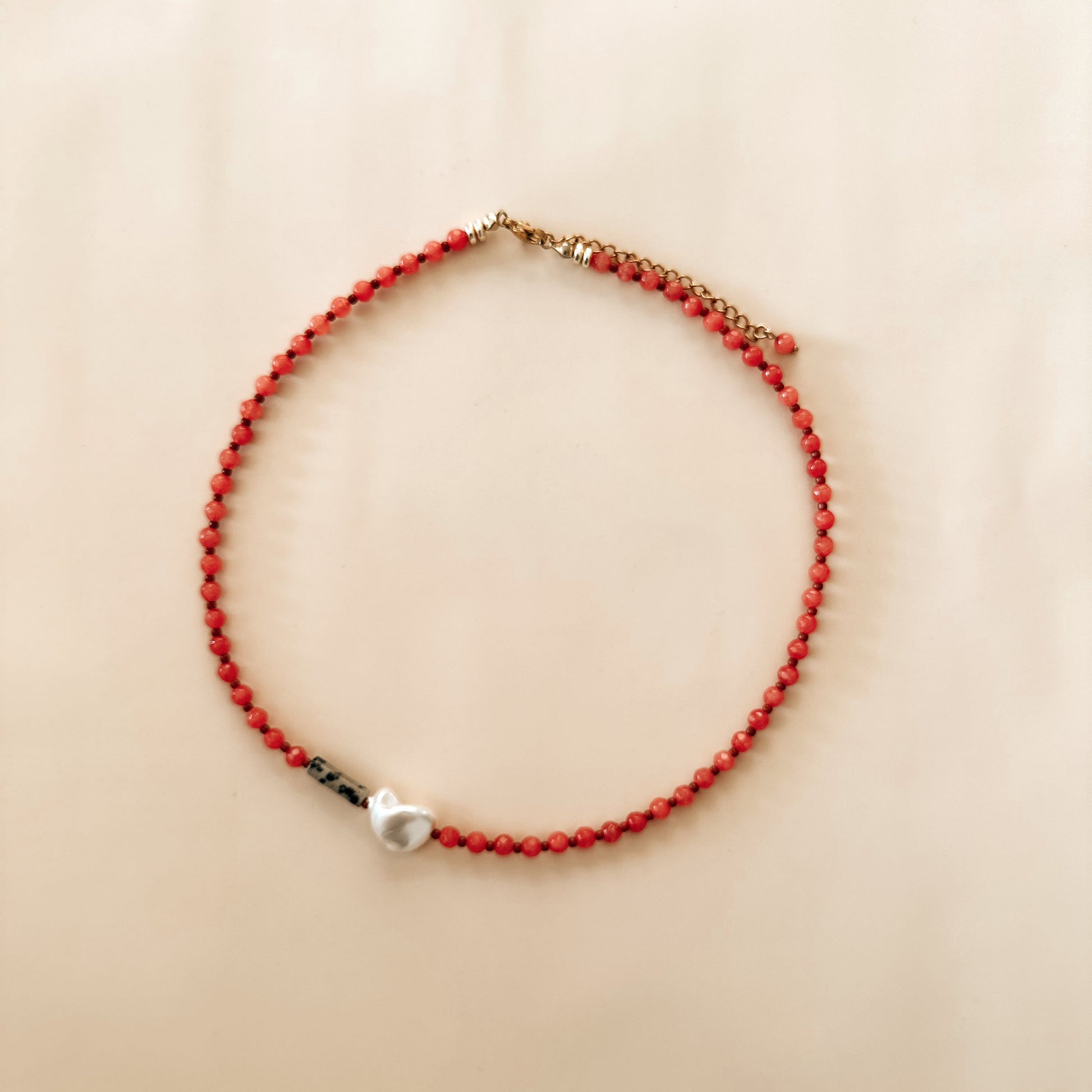 Una combinación de lo clásico y elegante. Nuestro ágata facetado, jaspe dálmata, perla cultivada + cierre acero inoxidable, es una combinación perfecta y divertida.